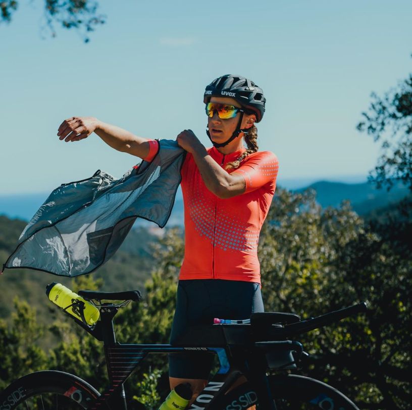 Pero lo mágico es el corte y el tejido elástico aplicado en la parte trasera para garantizar un perfecto ajuste sin que quede demasiado ceñido al cuerpo. Es altamente compresible, ocupa el mínimo espacio en el bolsillo trasero del maillot.