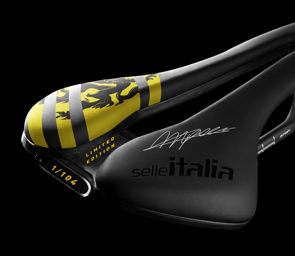 «Una producción limitada en exclusiva a 104 piezas, para recordar el número de ediciones de la Ronde Van Vlaanderen corridas hasta hoy – comenta Nicola Baggio, Director General de Selle Italia. Un sillín único que quiere celebrar el talento y la clase del joven campeón holandés y que será una pieza de colección para los apasionados de ciclismo».