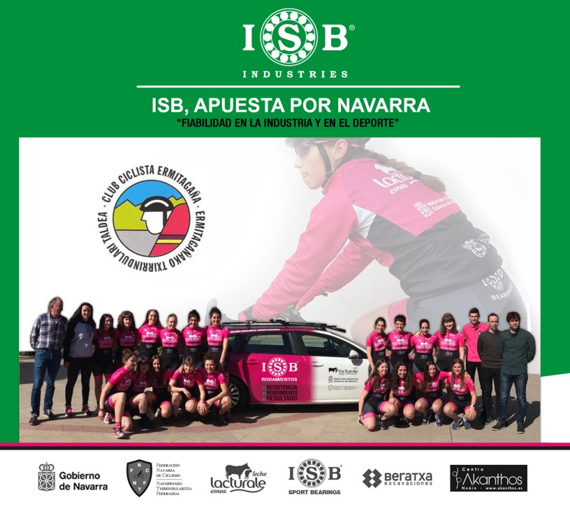 ISB Sport , la división deportiva de la marca italiana de rodamientos y componentes, ISB Industries, renueva su colaboración con las féminas del equipo Club Ciclista Ermitaña junto a Gobierno de Navarra, Federación Navarra de Ciclismo / Nafarroako Txirrindularitza Federazioa, Lacturale, Excavaciones Beratxa S.L. y Akanthos Centro de Fisioterapia.