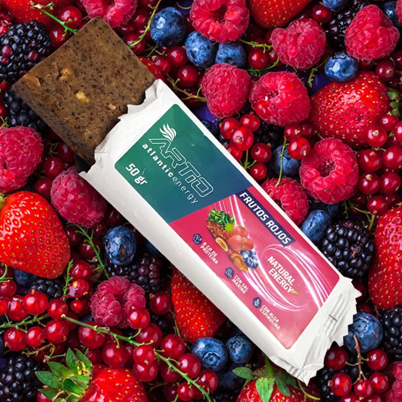 La primera barrita Artio Atlantic Energy que ve la luz es la de frutos rojos. Incorpora un alto contenido en proteínas, agua de mar liofilizada y alga espirulina. Una respuesta energética natural para los deportistas más exigentes con carbohidratos del dátil, proteínas de la clara de huevo, minerales orgánicos del Atlántico y vitaminas de alga espirulina. Sin azúcares añadidos, sin cereales, sin lácteos. Solo ingredientes naturales.