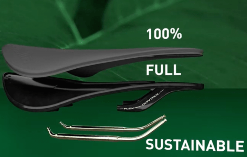 El primer sillín, realizado mediante un proceso productivo, ha sido lanzado en estos días bajo el nombre de Model X Green Superflow, un producto que representa una novedad absoluta porque ensambla tres componentes de forma mecánica y sin utilizar sustancias adhesivas contaminantes. De hecho, para la producción del sillín, ha sido utilizada la tecnología Flex Control, es decir un bastidor especial compuesto por dos elementos de diferente flexibilidad capaz de garantizar un confort superior y una resistencia mayor en comparación con los productos del mismo sector de mercado. El tercer componente es el rail en Fec Alloy, una aleación de acero hierro-carbono de alta resistencia y flexibilidad.