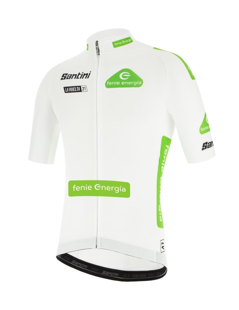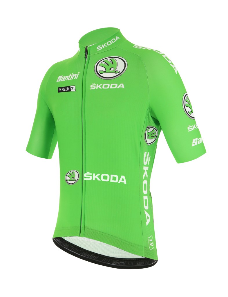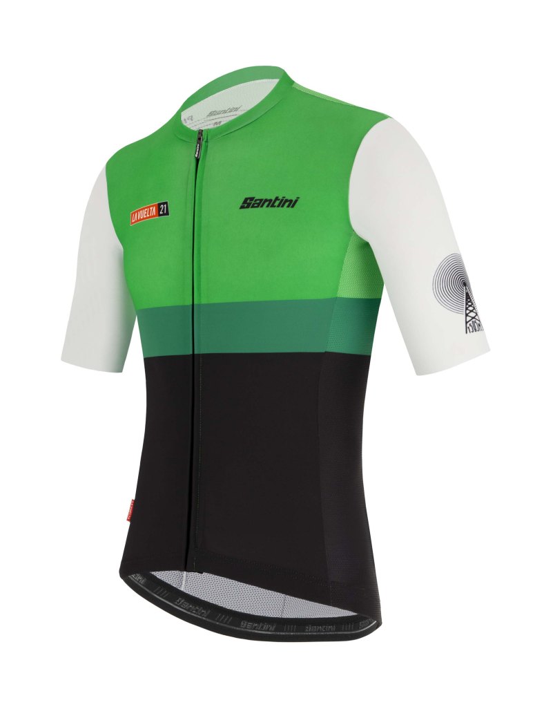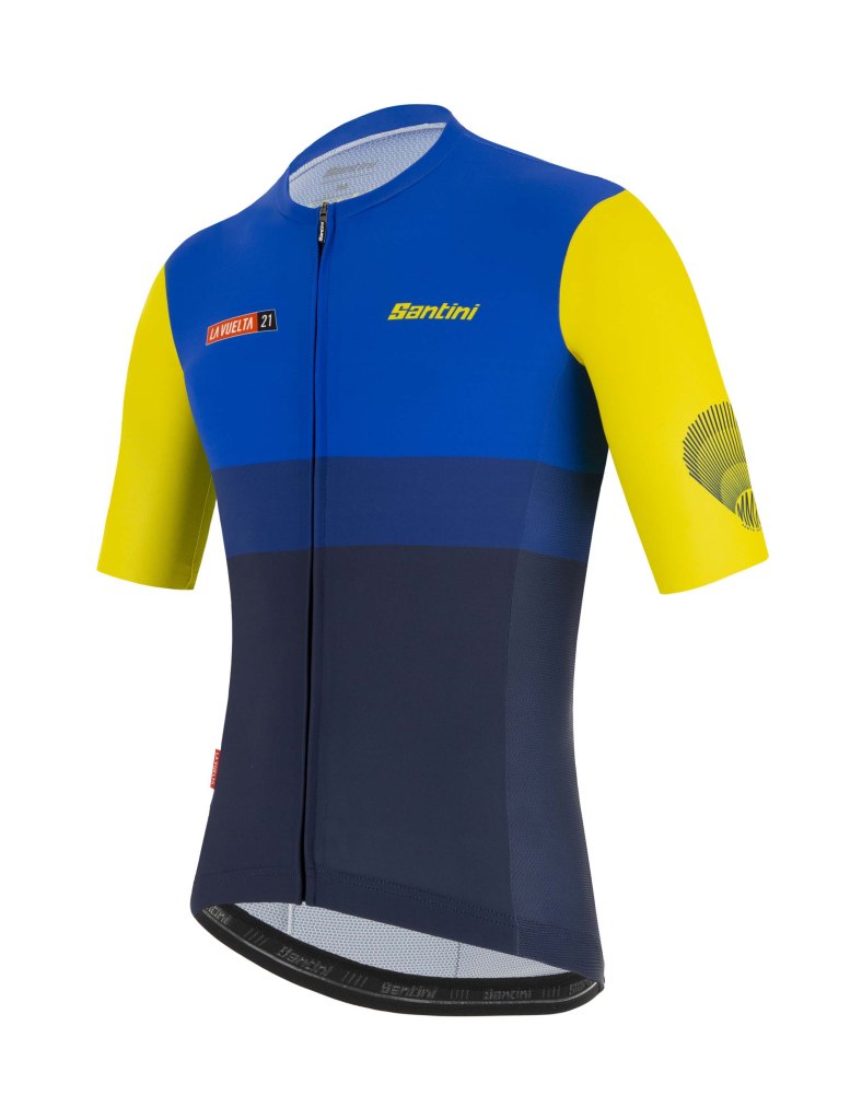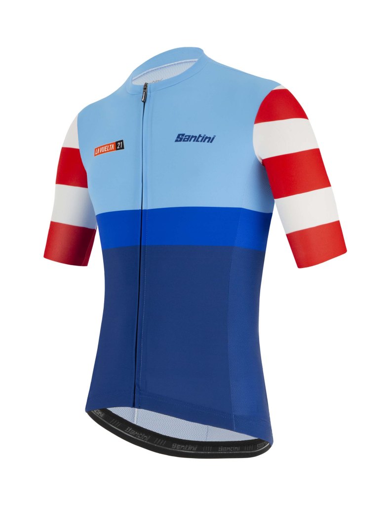 En honor a la jornada final de La Vuelta 21, que desemboca en la histórica ciudad de Santiago de Compostela, Santini ha creado un último kit, con tonos azules y amarillos, y la concha de peregrino, que simboliza el Camino de Santiago y que aparecerá en la parte trasera y en las mangas del maillot. Un guiño al año Xacobeo, que se celebra este año en Galicia y en toda España.