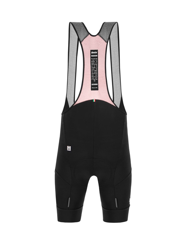 Culotes con tirantes de la colección para mujer de Santini para la primavera/verano 2021, fabricados con tejido de efecto compresivo Thunderbike Power y una sección adherente en la parte inferior de la pierna para mantener la prenda en su sitio. Los tirantes son altamente transpirables, gracias al tejido Polartec© Delta. Con badana GILevo, con núcleo en gel de silicona, que absorbe los impactos de forma constante y gradual. Esta badana está diseñada para la anatomía femenina y garantiza una gran comodidad durante seis horas sobre el sillín. En tres colores para combinar con todas las prendas de la colección para mujer: negro, azul marino y titanio.