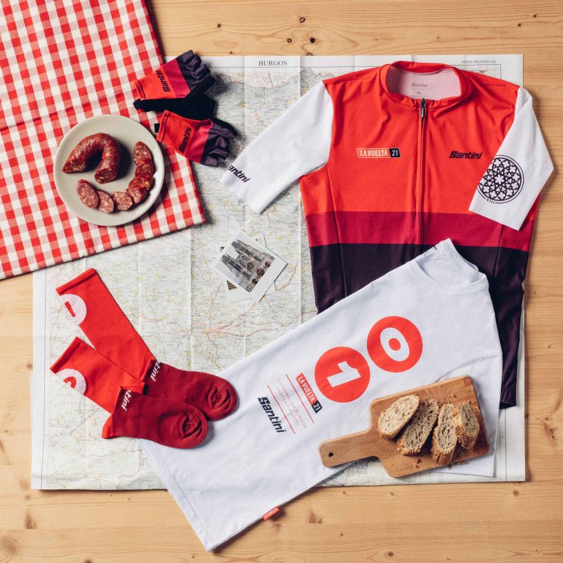 Además de los maillots oficiales, Santini ha preparado, un año más, una serie de kits conmemorativos inspirados en algunas de las etapas más emblemáticas de La Vuelta 21. Los cinco kits incluyen un maillot, su culote, calcetines, gorra y guantes además de una camiseta de algodón a juego.
