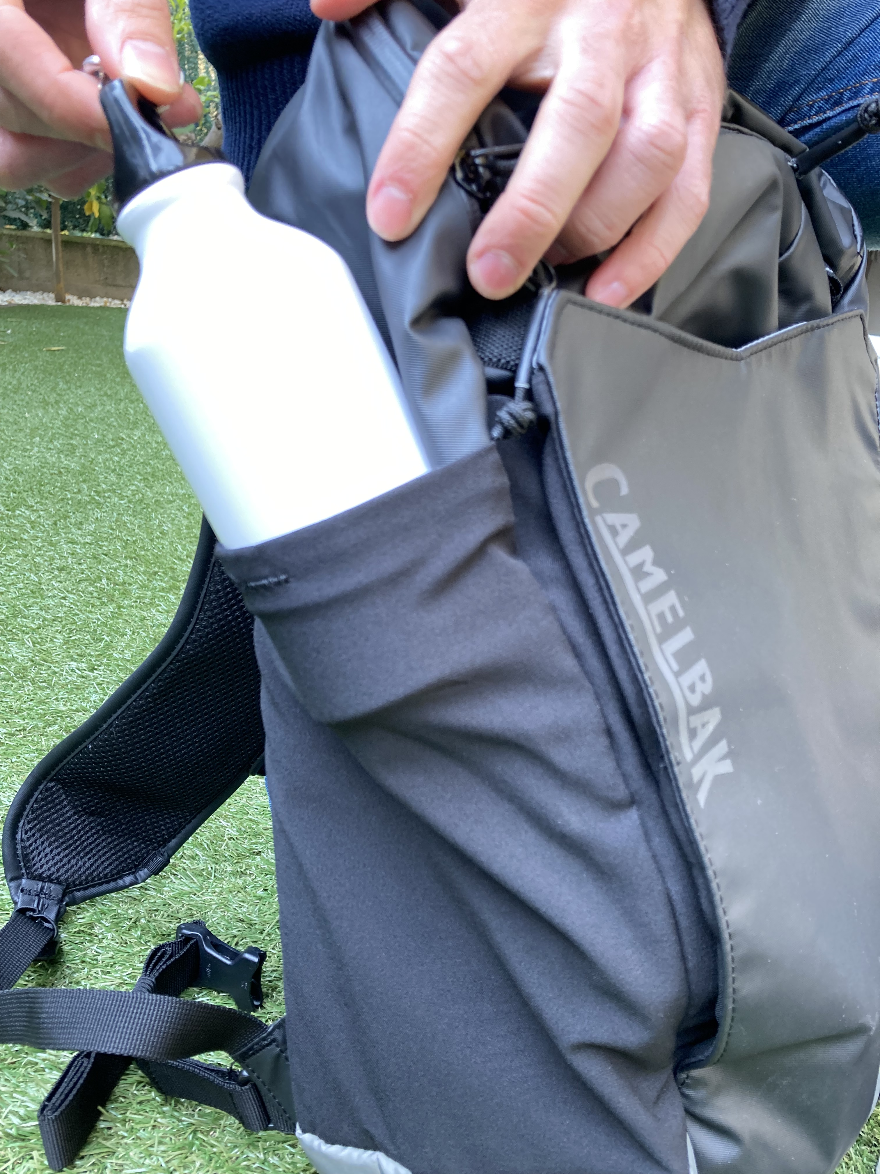 Si pasamos al exterior, a cada lado encontramos compartimentos, especialmente pensados para una botella de agua y el candado antirrobo. En la parte superior encontramos otro bolsillo con cremallera, donde guardar objetos a los que puedas acceder fácil y rápidamente. Pero la M.U.L.E® Commute 22 destaca por sus detalles y ahora os desvelaremos los que la hacen una mochila de altísima calidad. Ubicados en la parte delantera de las correas encontramos los bolsillos Command Center, uno de ellos con cremallera, ideados para el móvil o auriculares. Además, en la parte inferior hay un espacio para acoplar una luz para una mayor seguridad.
