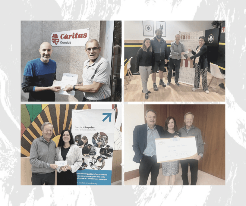 En concreto, se han entregado 2.500 € a la Fundación Albert Bosch que trabaja promoviendo la investigación de soluciones médicas, biomédicas y quirúrgicas para combatir enfermedades infantiles; 1.000 € a Cáritas Garrotxa para impulsar proyectos dirigidos a personas en situaciones de vulnerabilidad o exclusión social; 1.500 a la Oncolliga que desde el 2004 presta asistencia a personas que sufren cáncer y a sus familias y 1.000 euros a la Fundación Impulsa, dedicada al acompañamiento de jóvenes en situaciones de vulnerabilidad con la voluntad de mejorar su formación y crecimiento personal.