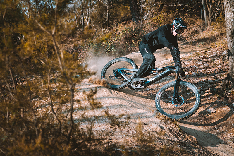 El tubo de sillín se ha verticalizado con un ángulo de 78° para garantizar la máxima eficacia de pedaleo y una gran tracción en las subidas. El ángulo de dirección es abierto (64°) para superar obstáculos evitando los wheelies.
